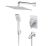 Ovaj model podžbukne mješalice s mogućnošću termoregulacije mlaza vode luksuzna je izvedba mješalice za tuš s fiksnim izljevom preko ruže zidnog tuša dimenzija 200x300 mm. Mješalica sadrži i ručni tuš te izljev što je čini savršenom za svakodnevnu upotrebu, a izgledom se uklapa u sve prostore.